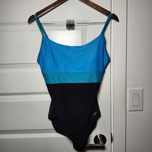 Speedo Womens One Piece Blue & Black Swimsuit Size 12