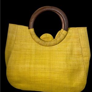 Mar Y Sol Rafia Straw Yellow Floral Bag Spring/Summer