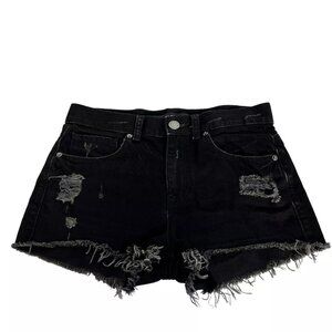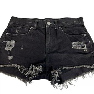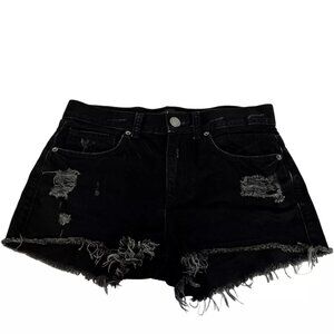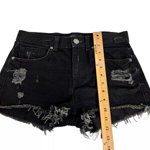 Express Jeans Womens Black Hem Ripped Distressed Denim Cut Off Shorts Size 4