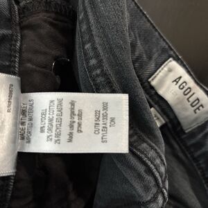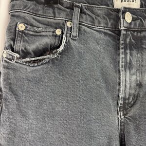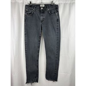 AGOLDE Toni Jeans Women's 27 Black Stretch Distressed Frayed Straight Mid Rise