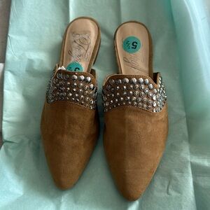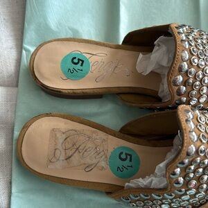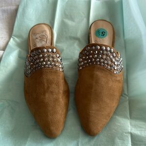 New Tan Suede Mules with Silver Accents FIRM on price Fergie real leather
