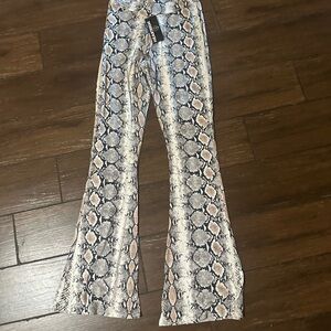 Stylish snakeskin print flare pants. Perfect for a bold look. Snake print wide leg soft yoga type pants size small