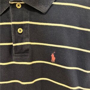 Polo by Ralph Lauren Navy Blue Striped Short Sleeve Polo Shirt Boys Size L 16/18