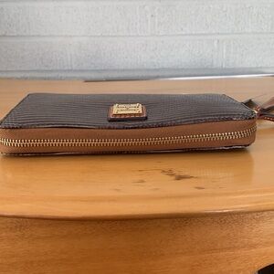 Dooney & Bourke Dk Gray Brown Leather Embossed Lizard Large Zip Wristlet Wallet