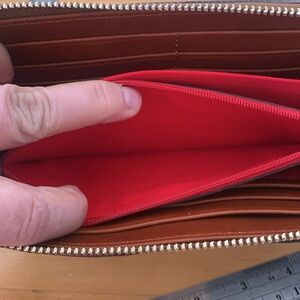 Red interior lining on the coin pocket