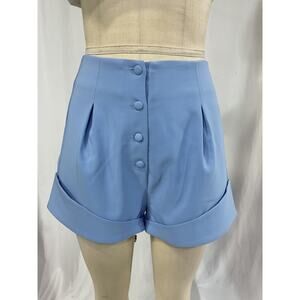 Camila Coelho 'Paulina' Blue Short Size M: button fly, back trim with pockets, rolled hem, crepe fabric.