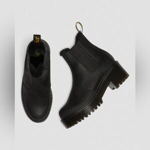 Dr. Martens Rometty faux fur lined black leather Chelsea boots