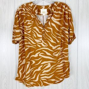 Anthropologie | Maeve | Windham Orange Animal Print Blouse Size Small