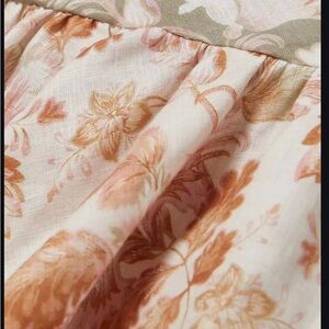 Elegant Zimmermann dress with a floral pattern. Features peach and cream tones. Perfect for a chic look.