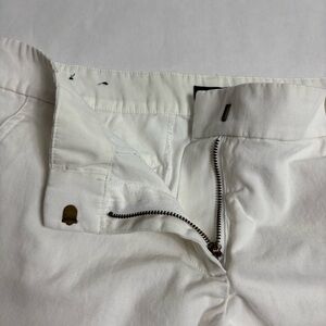J.crew white shorts. In excellent condition. Slight stain on front and back – pictured. Size 8. Has front and back pockets. Clips and zips in the front.