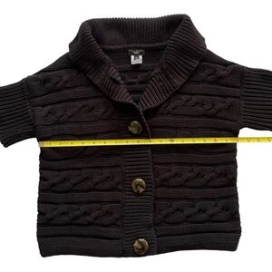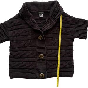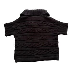 Talbots Petites Chunky Black Cable Knit Cotton Short Sleeve Cardigan Sweater-