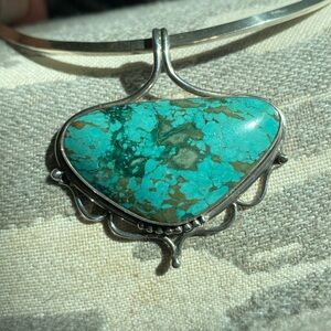 The color and patterns in this gorgeous chrysacolla pendant are striking! It’s like gazing into a tranquil blue green sea!