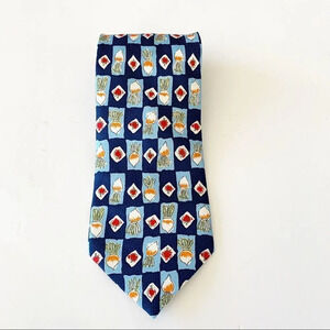 Emarco polyester necktie with vegetable theme motif. Perfect for the chef or the vegan in your life. Blue with colorful vegetable print. Preowned.