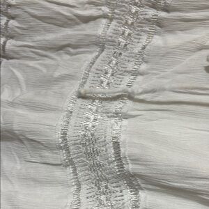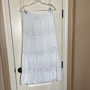 Long white skirt, with a lace pattern and adjustable ties. With a white layer underneath and no stains. Amazing for summer or spring.