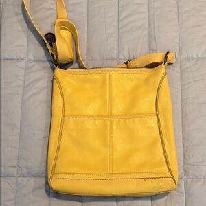 This vibrant yellow leather crossbody bag is perfect for adding a pop of color to any outfit. Crafted with quality materials, it offers both style and functionality. Ideal for everyday use. Like new