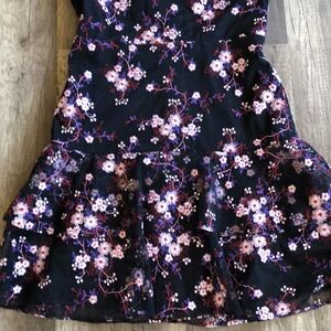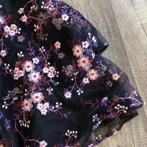 Parker Luana Black Floral Embroidered Halter Mini Dress 2 NEW