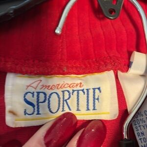 Cozy red two-piece lounge set. Includes a long-sleeve top and matching pants. Perfect for relaxing at home. Ptp is 24 and length is 29 . Pants are 32 inches from crotch , waist is 16 with stretch.Fabric is velour.