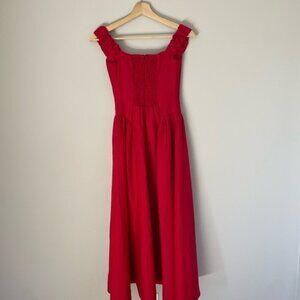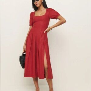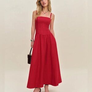 NEW Reformation Monet Linen Midi Dress Lipstick Red Off-Shoulder | size 4