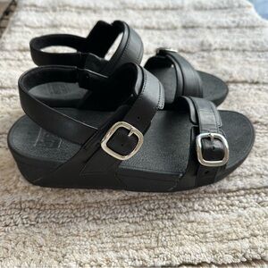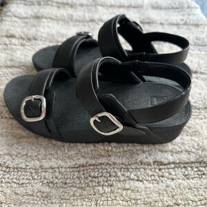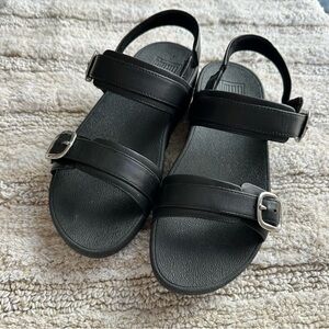 FITFLOP women’s LULU adjustable SOLID BLACK Sandals with Silver Buckles size 7