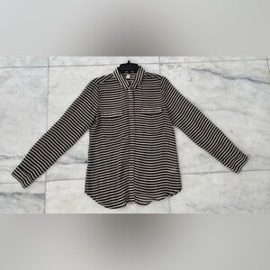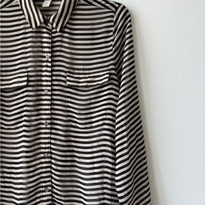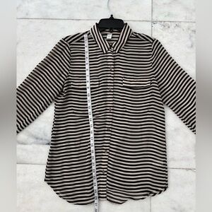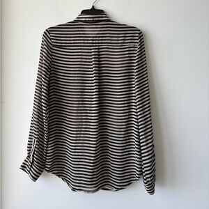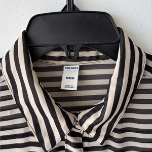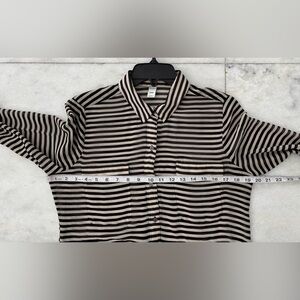 Old Navy Button Up Top Stripe Black Beige Pocket Sheer Women M Minimalist Office
