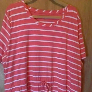 Kim Rogers Curvy Womens Pink & White Dress 3X Striped Short Sleeves