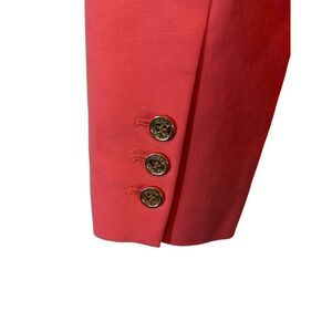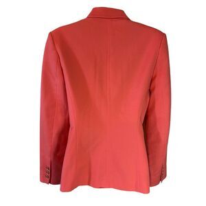Keywords: coral blazer, single button, office wear, professional, business attire, womens blazer, structured jacket, gold button, cotton blend, stretch blazer, work wear, vince camuto blazer