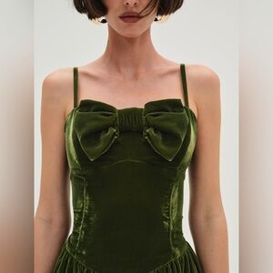 For Love and Lemons Martini Velvet Mini Dress sz M. Worn once in perfect condition. This dress is a beautiful martini olive green with a large bow accent on the front. Comes from a smoke free home. 🍸🫒