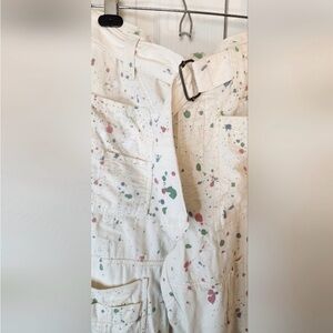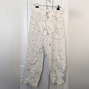 Free People Painter Pants In Ivory Size 8 Utility Paint Splatter Lounge Y2K