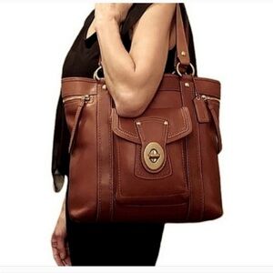 Coach Cognac Burnished Leather Legacy Gigi Shopper Tote Shoulder Bag