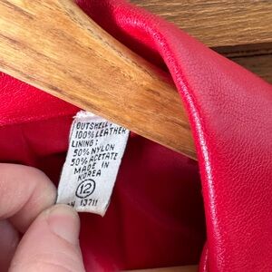 Stylish red leather jacket perfect for any occasion. Features a sleek design with a comfortable fit.