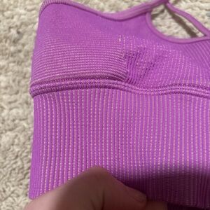 Experience comfort and style with the Alo Yoga Women's Sports Bra in a vibrant purple hue with electric lime accents. Perfect for workouts or casual wear.