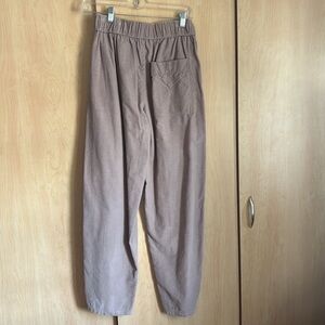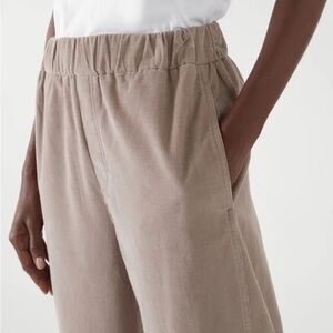Crafted from organic cotton, these light cord beige trousers feature a rounded, barrel leg and a comfortable elasticated waistband for all day wear.
