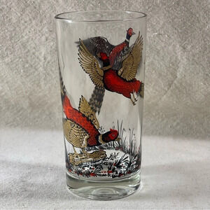 Vntg Libbey Highball Glass Red Ring Neck Pheasants Hunting Barware Game Bird