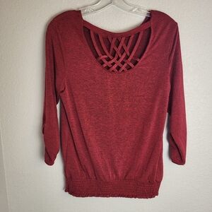 Apt 9 Women's Top Red with 3/4 Sleeves Size M Lattice Back Cutout