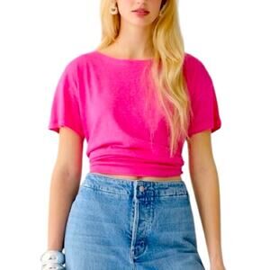 J. Crew Relaxed Linen T-Shirt Neon Flamingo Size XS