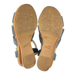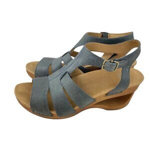 Dansko Trudy Wedge Sandals Women’s Size 40 Blue Leather Comfort Strappy Heel