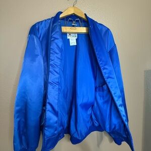 Vintage Canada Sportswear Company jacket with a rare embroidered logo from the Orillia Twin Lakes Jack & Jills Square Dance Club. This royal blue satin nylon jacket has a 100% nylon lining, a blue zipper, and ribbed cuffs and hem for a classic fit.