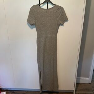 Elegant gray maxi dress with a stylish twist-front design. Perfect for any occasion. Casual & Comfortable material. Size Medium. Fits snug. Never worn/washed.