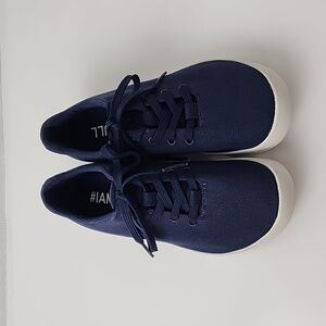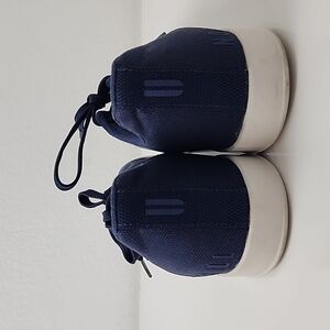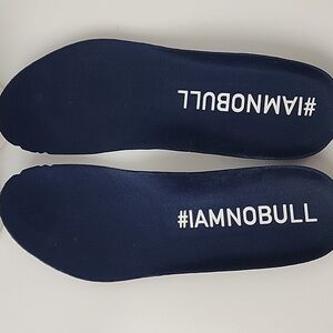 Description: Perforated canvas upper, arch support, molded sock liners, unisex trainer shoe, reflective NOBULL logo, rubber sole, navy blue shoe laces, removable insoles