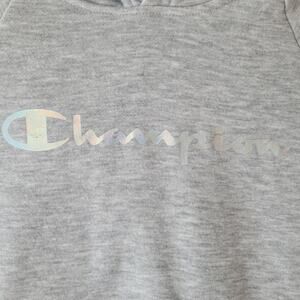 Champion Girl's Gray Hoodie With Iridescent Logo. Size 6. New with tags. 60%Cotton 40% Polyester. Front pocket.