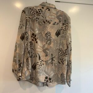 Alfred Dunner Blouse Women Plus 24W Animal Print Tan Gray Cats Secretary Vintage