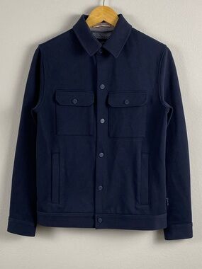 - knitted with ribbed collar, bottom hem, and sleeve ends