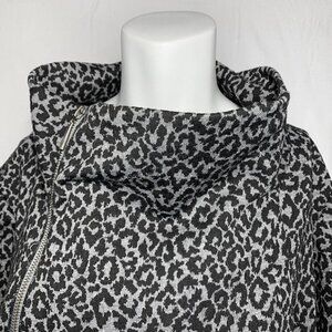 MARC BOUWER Asymmetrical Zipper Leopard Knit Jacket