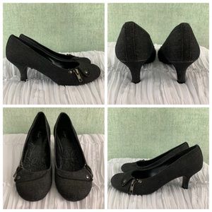 Black Denim Mary Jane Heel Pump Shoe Low Heel 7.5