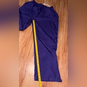 Vintage purple track pants with a comfortable fit. Perfect for casual wear or workouts. Mesh lined down to about the knees, pockets, draw string, zip up leg cuffs. No signs of wear.