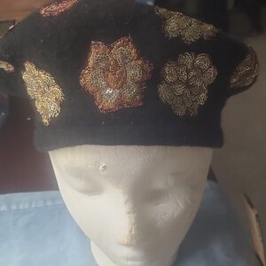 Elegant beige hat with floral accents. Perfect for stylish outings.