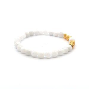 Please message us for any size request. Stretchable bracelet. Silicone or rubber (color may vary) between gemstone beads and gold charms.