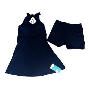 Halara 2 Piece High Cut Out Neck Double Strap Back Active Dress Sz Small Black