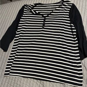 Croft & Barrow Black and White Buttoned Long Sleeve Tee