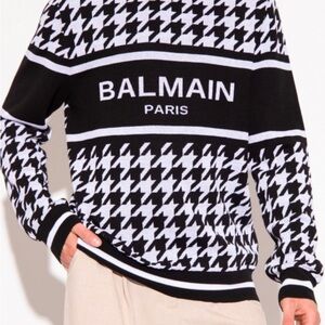 Elevate your style with this Balmain men's sweater in classic black and white. Featuring a bold design, it's perfect for any occasion.